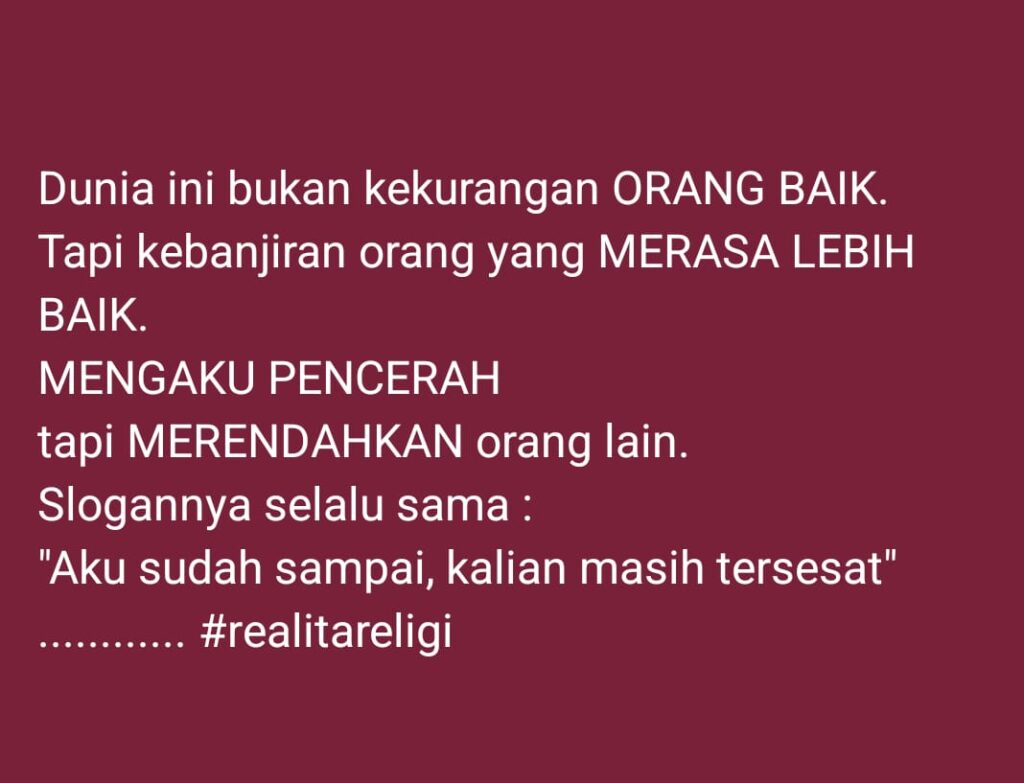 Fenomena di mana seseorang merasa lebih baik dari orang lain dan merendahkan mereka yang dianggap belum “sampai” pada pemahaman atau keyakinan yang sama adalah hal yang dikecam dalam Islam. Ayat-ayat Al-Qur’an dan hadis Nabi ﷺ dengan tegas melarang kesombongan, perasaan suci, serta sikap merendahkan orang lain. Seorang Muslim sejati seharusnya selalu rendah hati, menghindari prasangka buruk, dan mengutamakan akhlak mulia dalam berinteraksi dengan sesama. Kebaikan yang hakiki bukanlah dalam pengakuan diri, melainkan dalam ketulusan hati dan perbuatan nyata.
