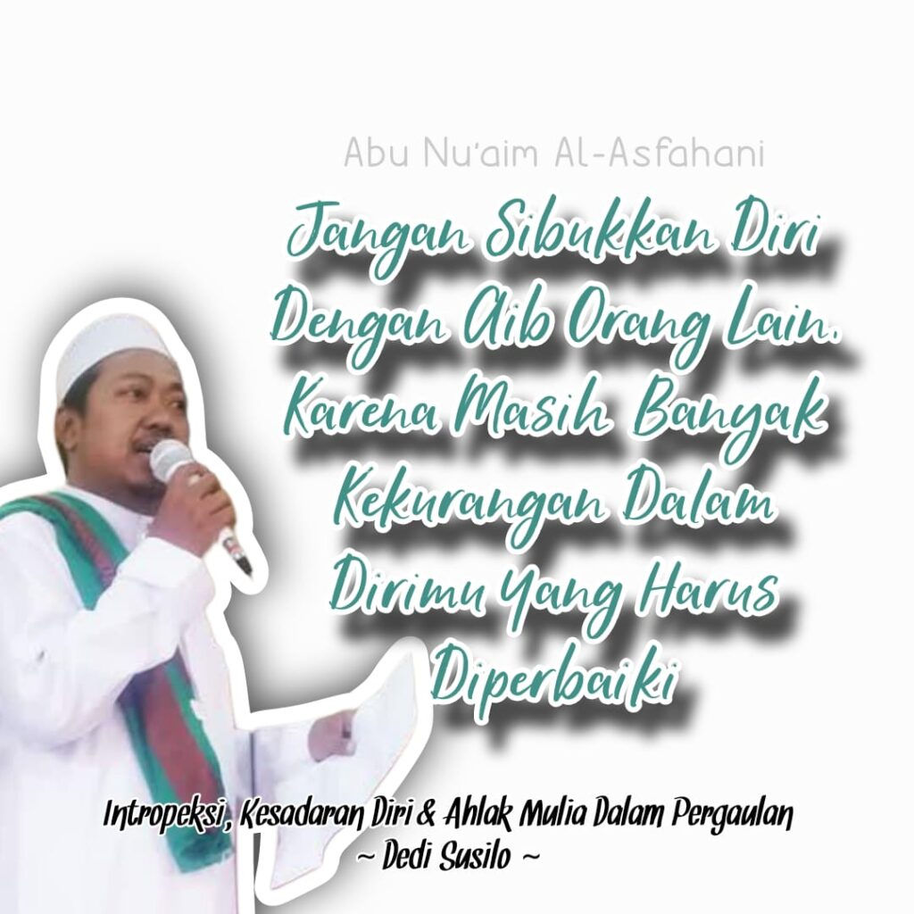 Kata mutiara ini mengandung makna mendalam tentang introspeksi, kesadaran diri, dan akhlak mulia dalam pergaulan. banyak disampaikan Oleh Alim Ulama ,