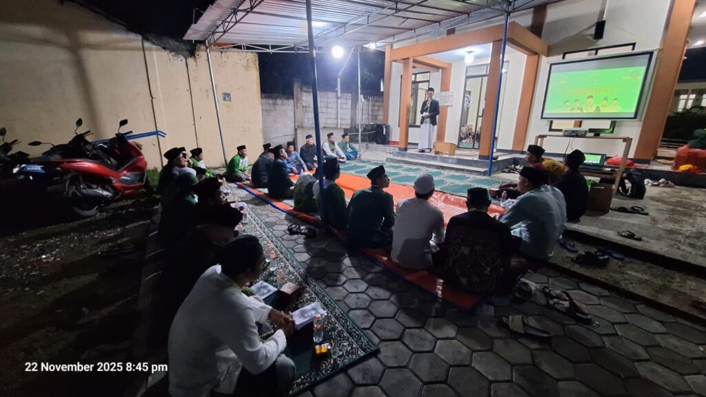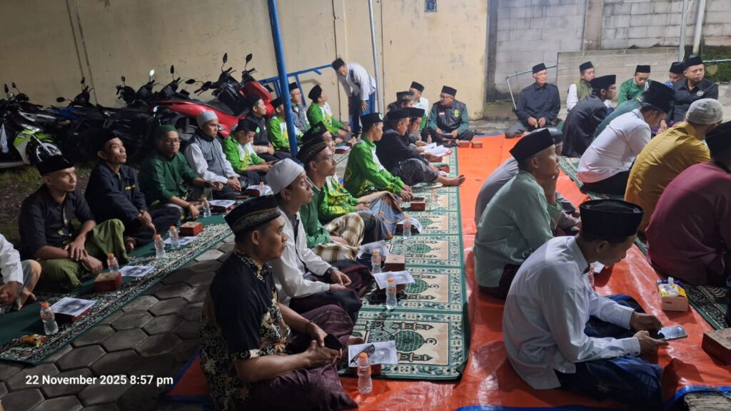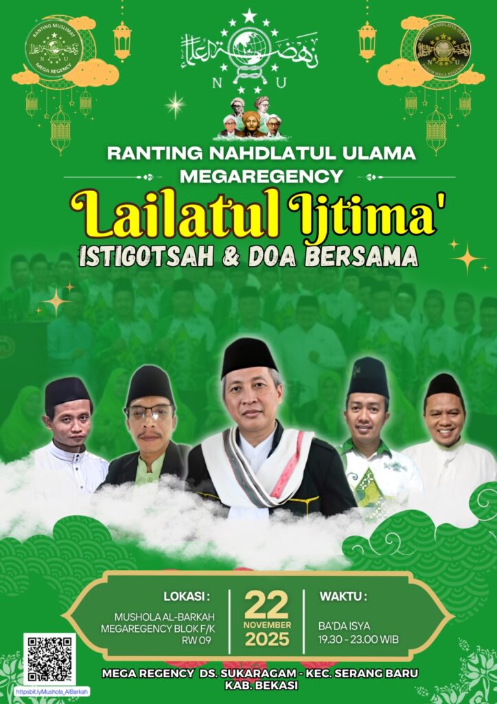 sahabatedu.com – Mega Regency — Ranting Nahdlatul Ulama (NU) Mega Regency kembali menghadirkan suasana religius dan penuh kebersamaan melalui gelaran Lailatul Ijtima’, istighotsah, dan doa bersama yang diselenggarakan pada malam Ahad, 22 November 2025, bertempat di Mushola Al Barkah Blok K–FK. Kegiatan rutin ini menjadi ajang memperkuat silaturahmi warga sekaligus media dakwah yang menyejukkan bagi masyarakat Mega Regency.