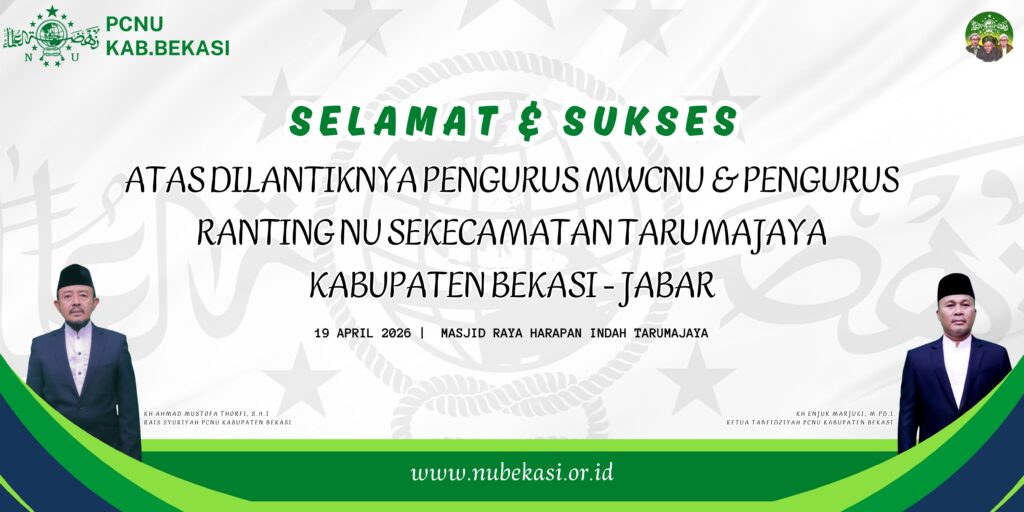 Bekasi, 19 April 2026 — Pimpinan Cabang Nahdlatul Ulama (PCNU) Kabupaten Bekasi menyampaikan ucapan selamat dan sukses atas dilantiknya Pengurus Majelis Wakil Cabang Nahdlatul Ulama (MWCNU) serta Pengurus Ranting NU se-Kecamatan Tarumajaya, Kabupaten Bekasi, Jawa Barat. Kegiatan pelantikan yang berlangsung khidmat ini dilaksanakan di Masjid Raya Harapan Indah, Tarumajaya, dengan dihadiri para tokoh ulama, pengurus NU, serta elemen masyarakat Nahdliyin.