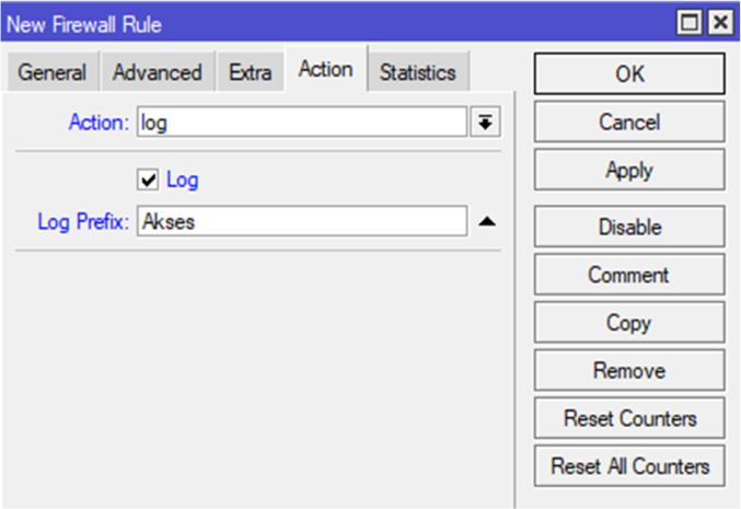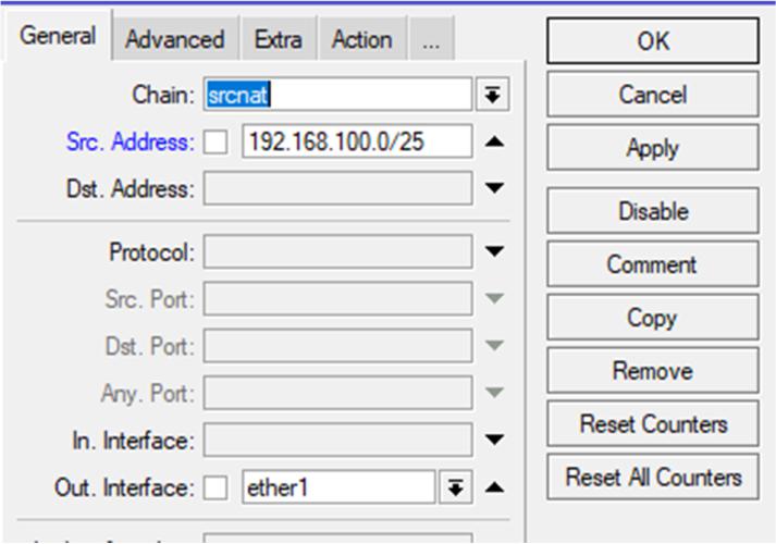 Masuk pada IP Firewall Filter Rules Add Chain = Forward