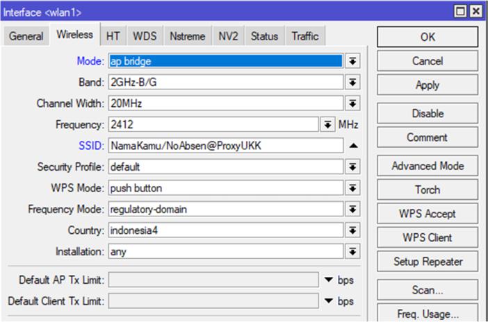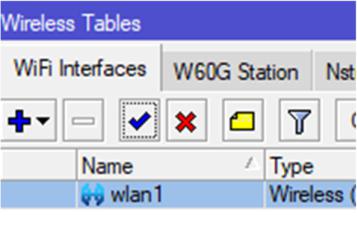 Aktifkan Terlebih Dahulu Masuk Menu Wireless Klik 1x pada Wlan1 Centang / Enable