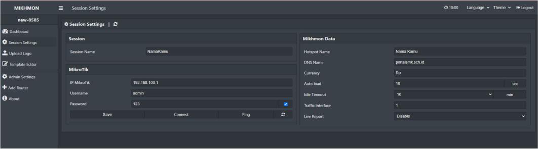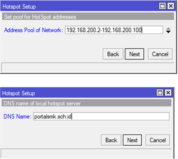 Hotspot Name = Nama Kamu DNS Name = portalsmk.sch.id