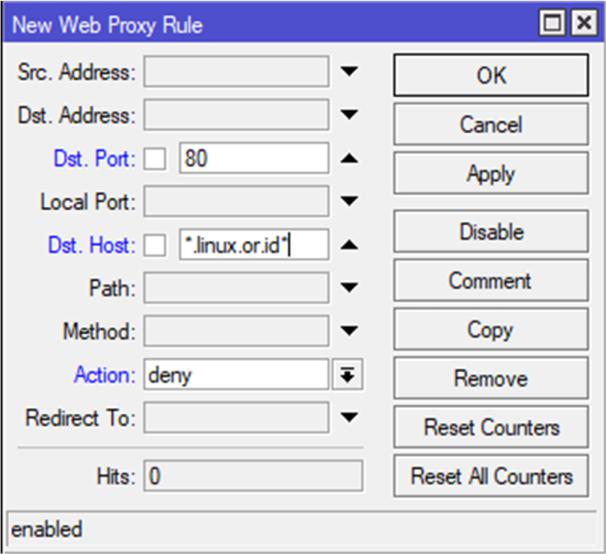 Dst. Host = *.linux.or.id* ( saya pake or.id karena .org pakenya https yang tidak bisa menggunakan web proxy )