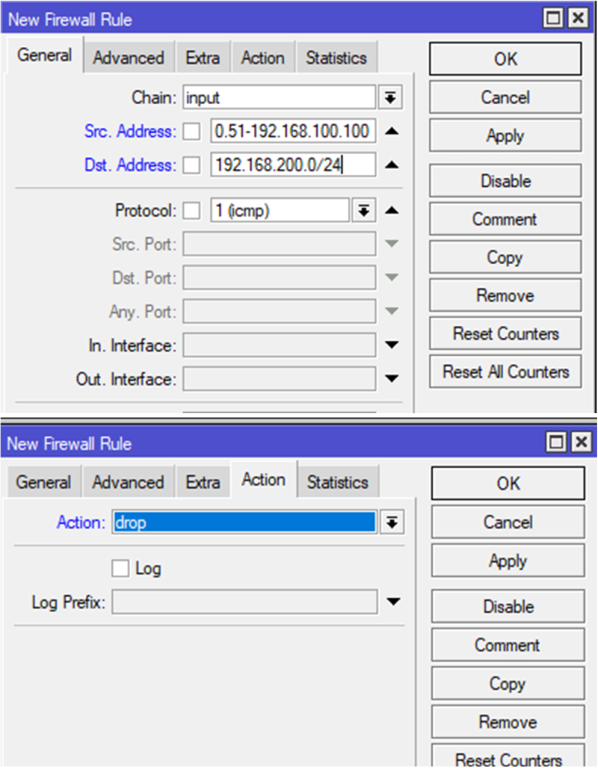 Src.Address = 192.168.100.2 – 192.168.100.50 Dst. Address = 192.168.100.1