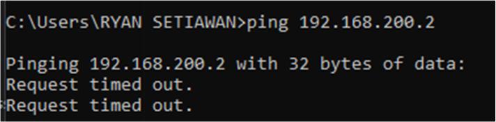 buka CMD / Command Promt Ketikan Perintah Ping 192.168.200.2 Pastikan keteranganya request time out