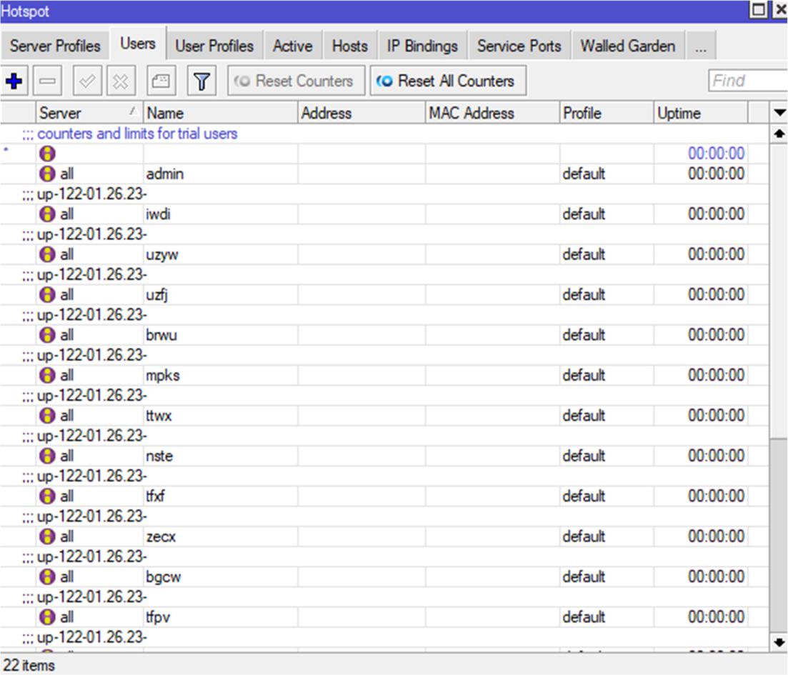 Masuk Pada Winbox IP Hotspot Users Pastikan Username Yang Tadi Digenerate Terdaftar